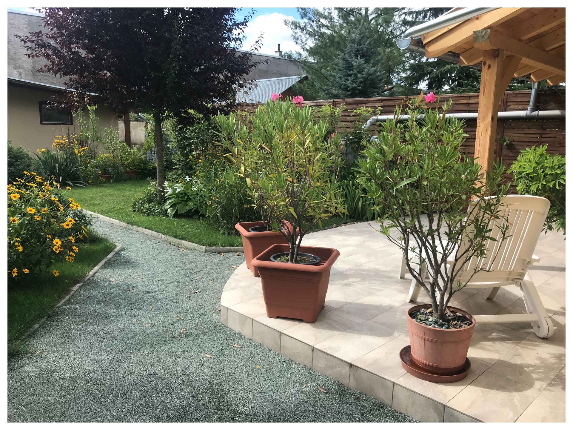 Hangulatos, virágokkal díszített kertünkben napozóágyak várják vendégeinket.