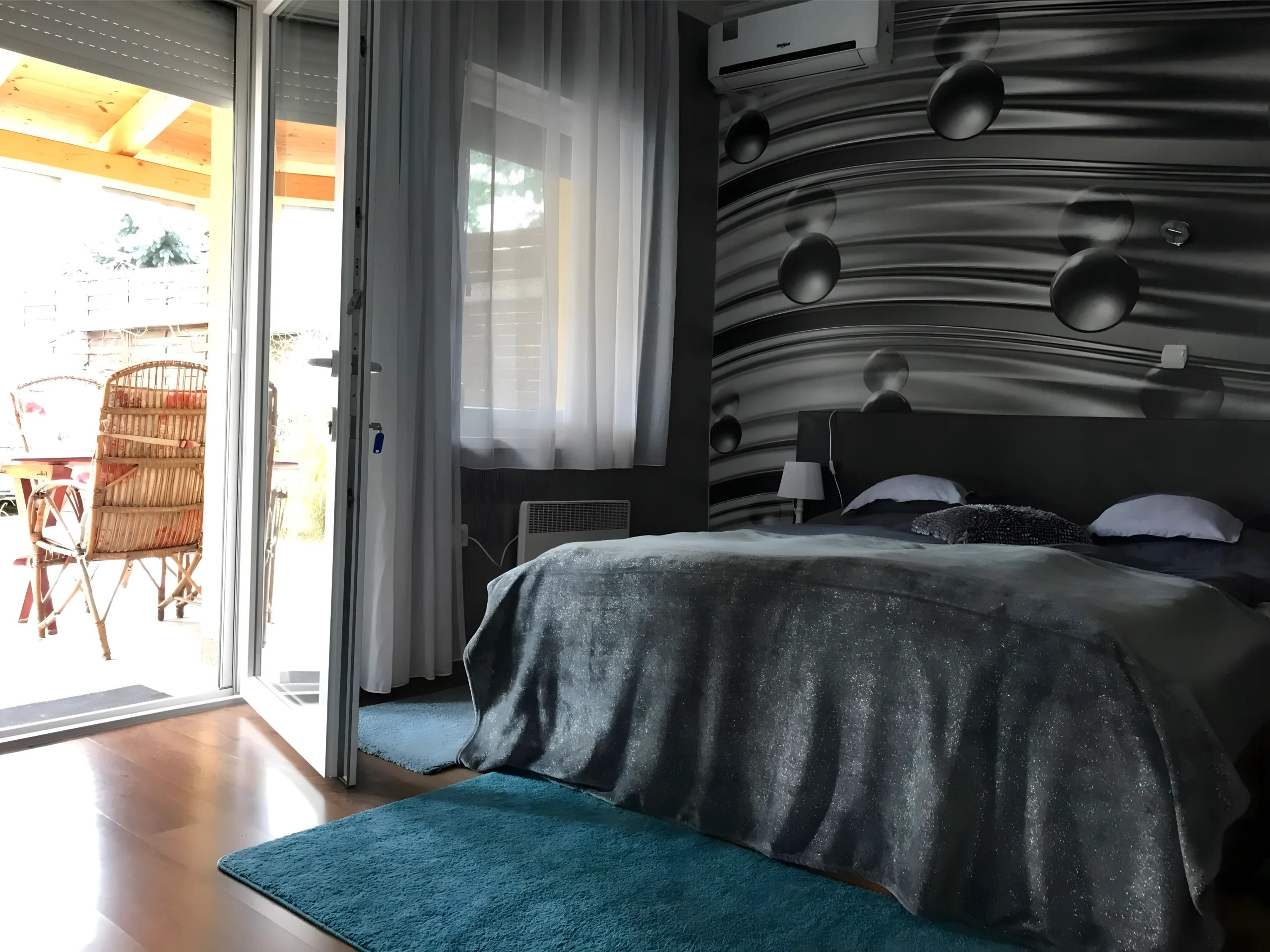 A letisztult berendezésnek, illetve a hangulatos, kertre néző erkélyajtónak köszönhetően ez az apartman tökéletes felüdülést kínál a pihenni vágyó pároknak.