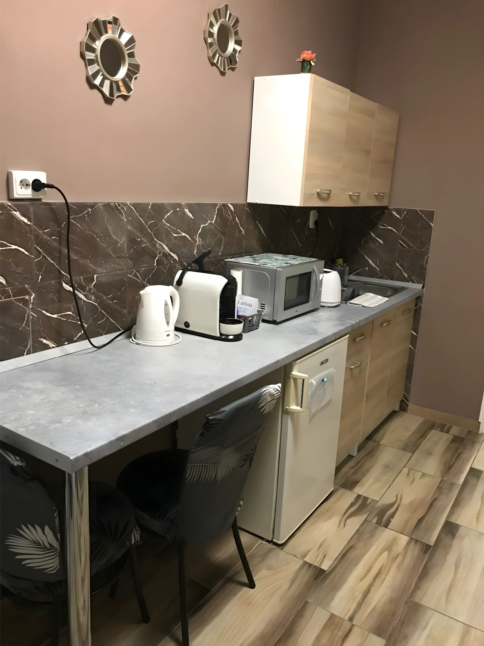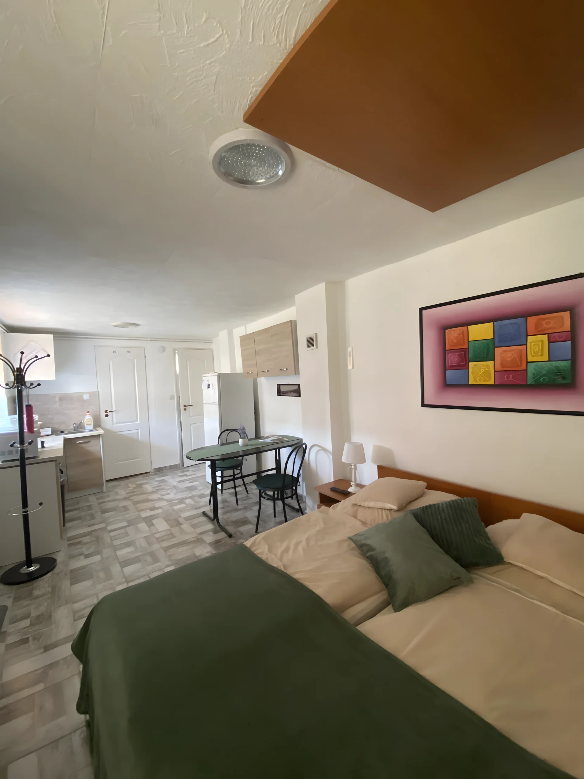 A stúdióapartman két fő elszállásolására alkalmas, így tökéletes választás pároknak, akár egy pihentető hétvégére, akár aktív kirándulásokhoz