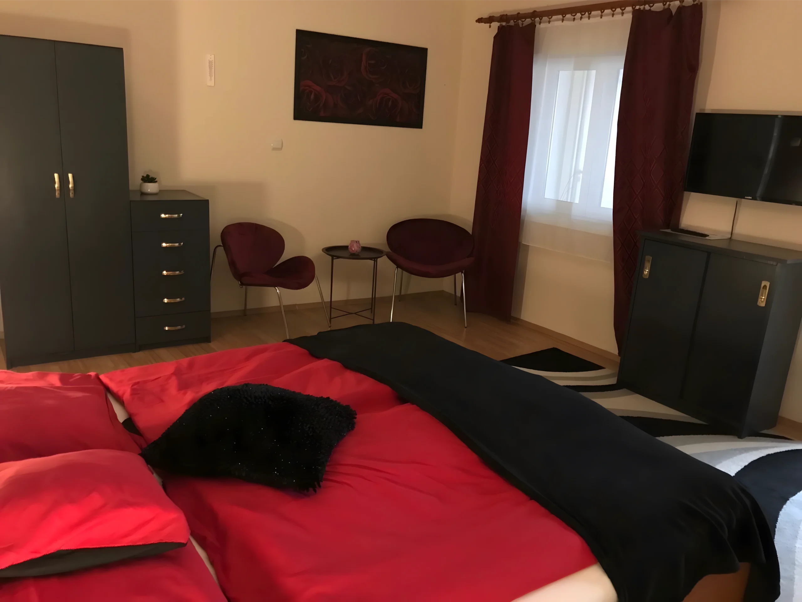 A romantikus berendezésű Rózsa apartman akár nászutas, esetleg az évfordulójukat ünneplő párok számára is ideális választás.