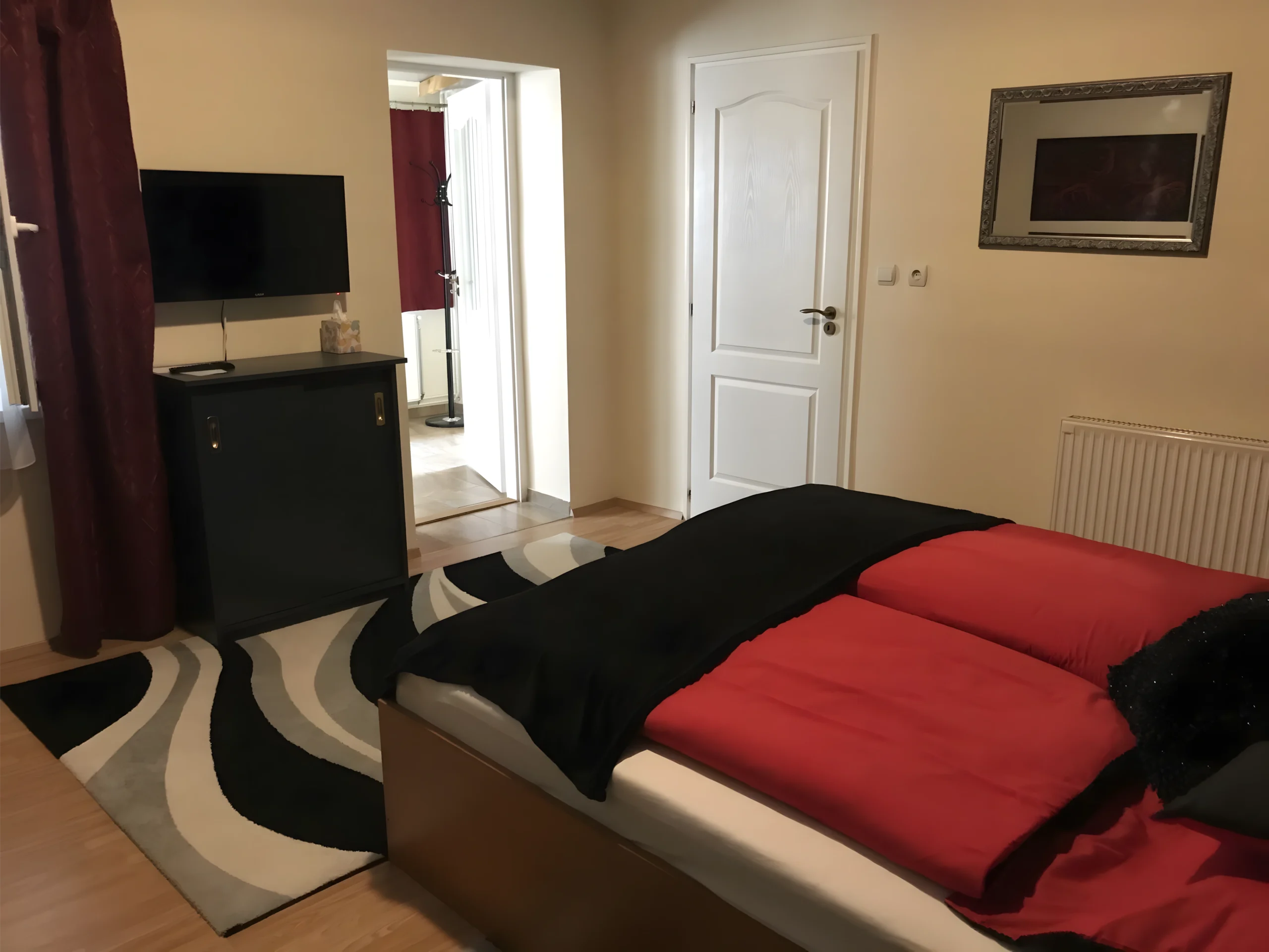 Az apartman 2 fő számára biztosít kényelmes elhelyezést, ugyanakkor pótágyazható, így 2+1 fő elhelyezésére is ideális. A hálószobában franciaágy, ruhásszekrény, televízió és légkondicionáló szolgálja vendégeink komfortját.